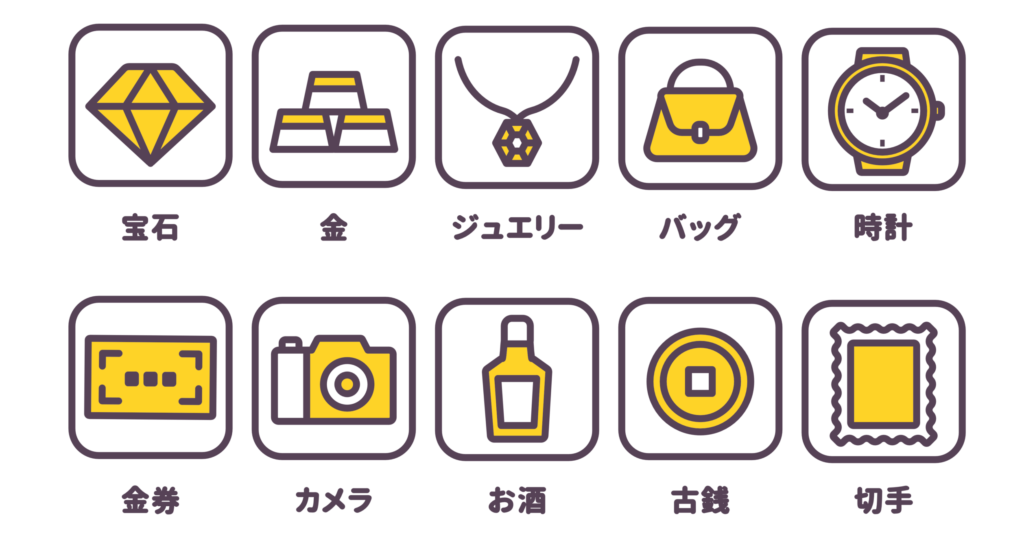 時計・バッグ・貴金属・着物・家電・おもちゃ・骨董品・アンティーク品・雑貨・酒類・切手・工具類・ブランド品・アクセサリー類などお客様の身の周りのものを買い取ります。